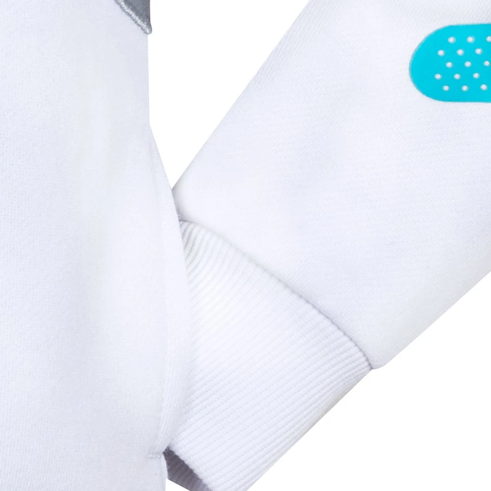 The inflatable personal healthcare companion from Disney’s Big Hero 6 brings his oversize personality to this jacket. Baymax’s distinctive eyes peer out from the hood of this cotton blended top that includes his markings on elbows and side. Colorful band aids make this a hoodie that really sticks out.