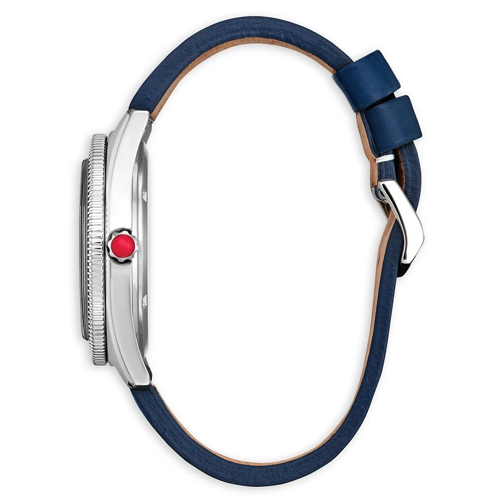 One of your many super powers is being able to tell time in the dark with this Captain America watch by Citizen featuring glow-in-the-dark details. The Eco-Drive, light-powered watch is just as impressive in the daylight, thanks to the dial design highlighted by Cap’s shield looking like it’s in motion and a sporty blue leather strap with red, white and blue stitching. It’s the powerful finishing touch to any look you assemble, day or night.