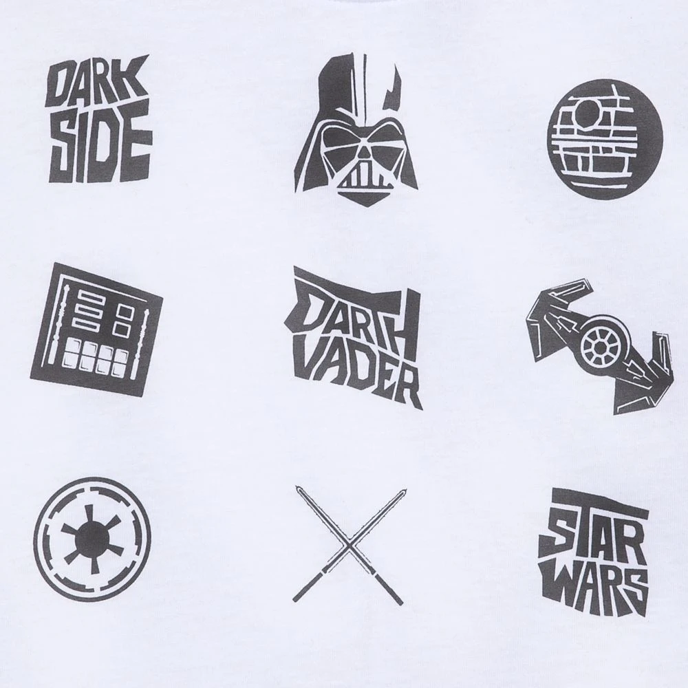 - Stylized screen print includes Darth Vader, ”Dark Side,” ”Star Wars” and other icons