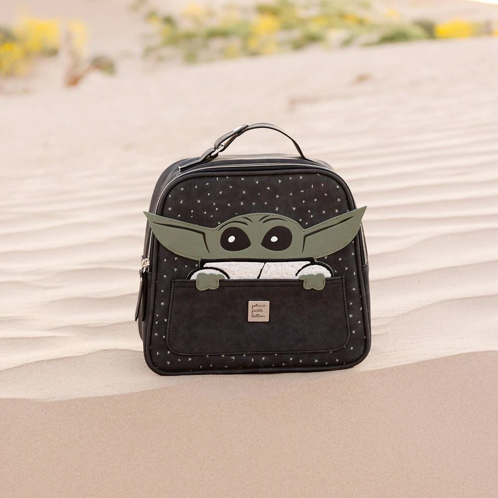 Little Grogu is familiar with being carried around by the Mandalorian, but now you can keep an eye on him everywhere you go with this tandem bottle and lunch tote from Petunia Pickle Bottom. Made for baby and beyond, it’s generously sized to hold three regular-sized bottles and an ice pack, with room for snacks or a formula container. Also ideal for carrying a wearable breast pump and supplies. Crafted to Petunia Pickle Bottom’s high standards, this bag can continue its service well beyond the bottle years as an insulated lunch and snack tote.