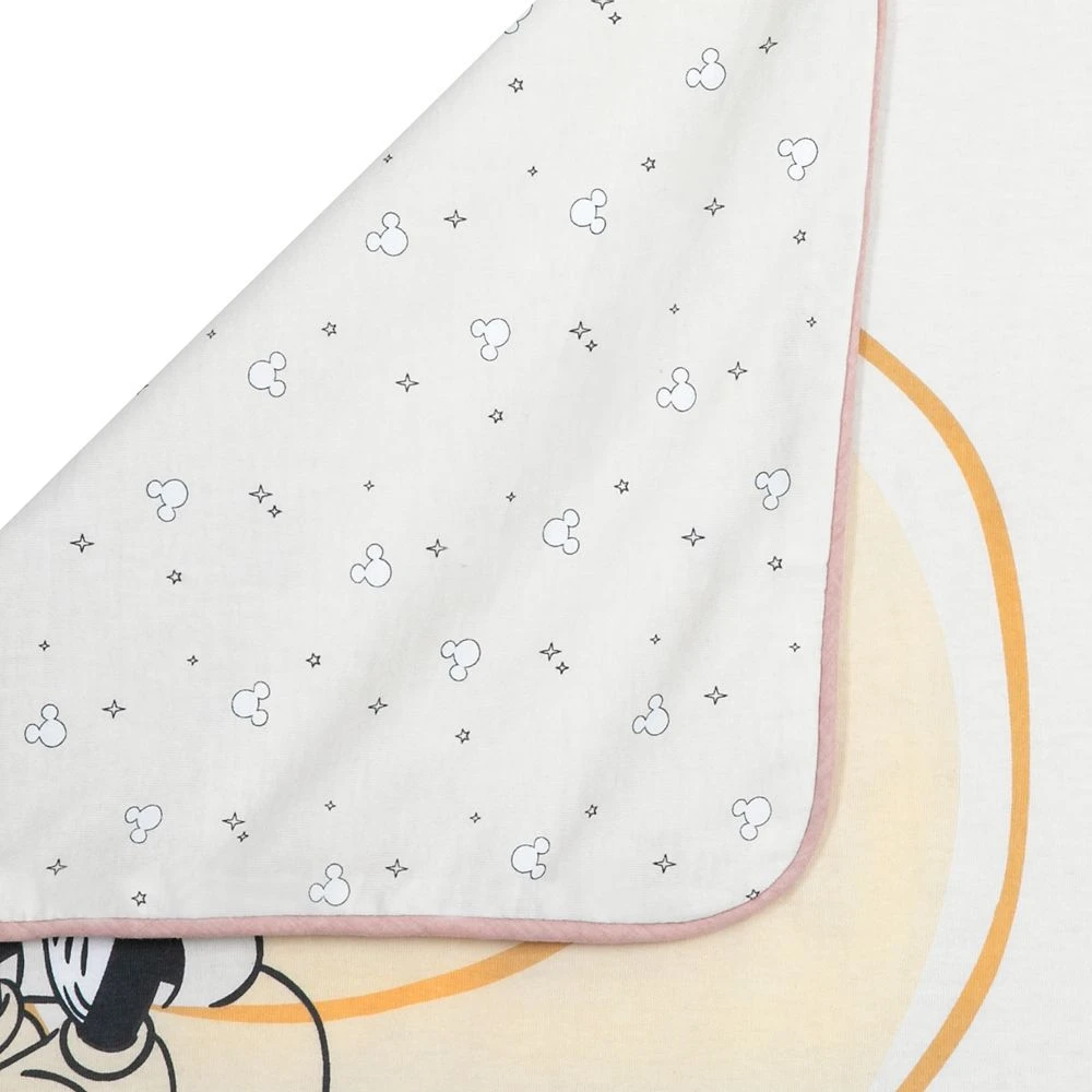 Celebrate baby’s first year with this picture-perfect Mickey and Minnie Mouse milestone blanket that makes the perfect gift. Made of the softest cotton, it is a snuggly spot for baby while you take their photo. Included is a Mickey icon to mark the month. Numbers one through 12 are screen printed on the keepsake blanket that features Mickey perched on a crescent moon looking down on his sweetheart Minnie.