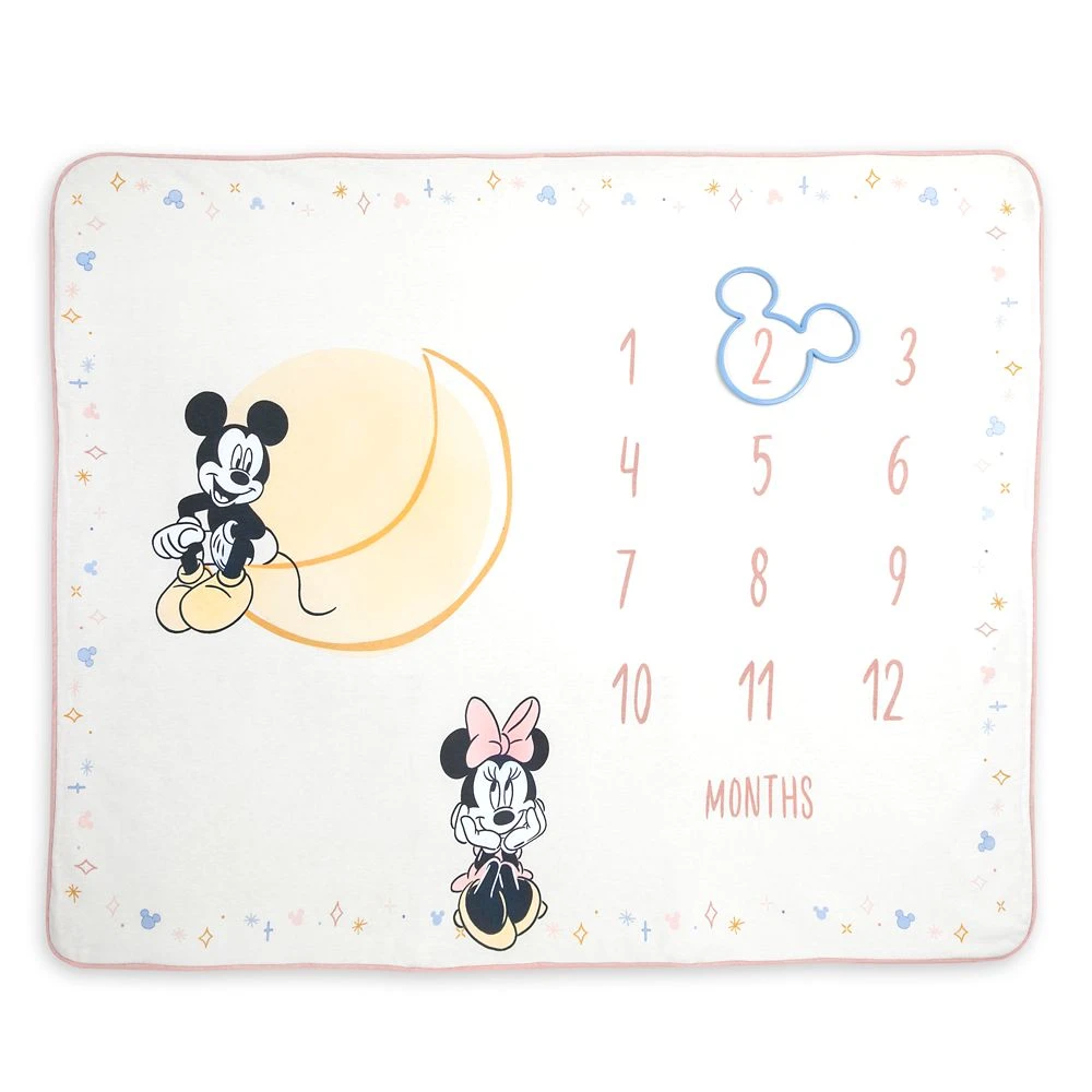 - Two-piece milestone set includes blanket and Mickey Mouse icon to mark the month