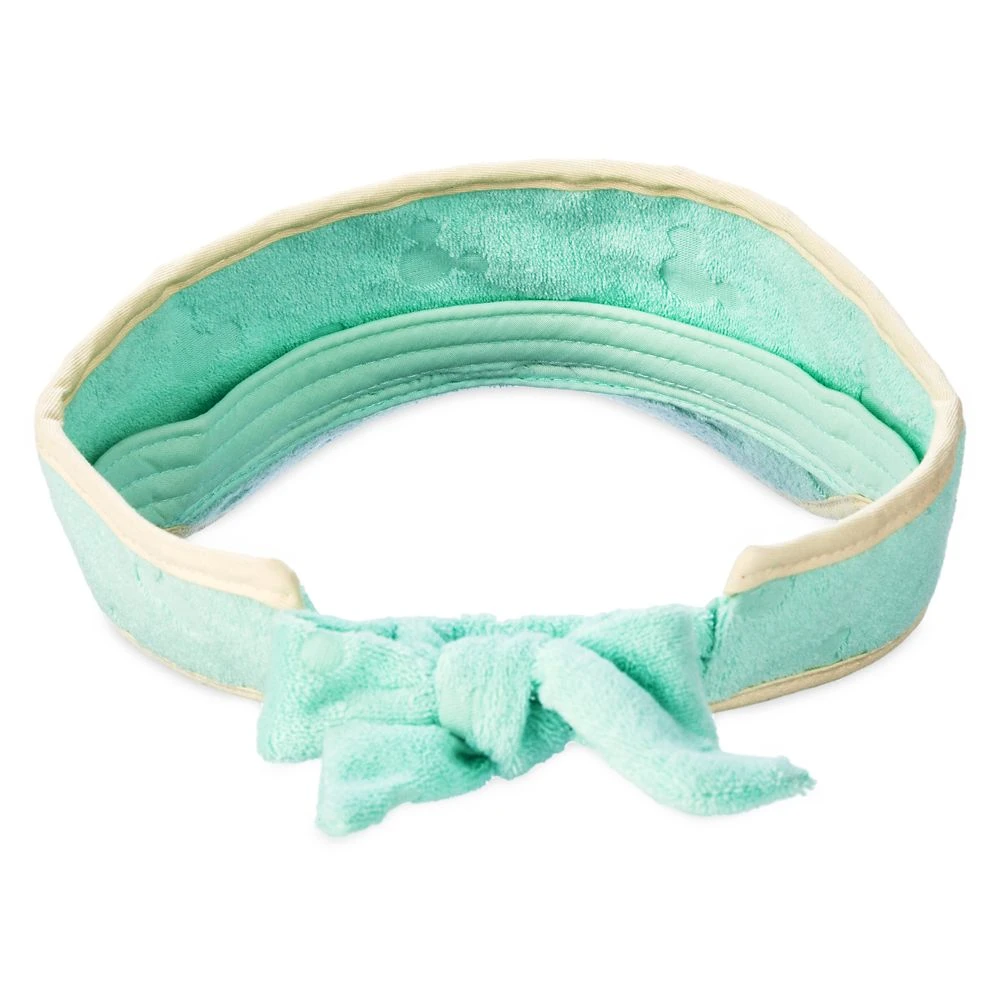 Part of the Mickey Mouse Summer Collection, this soft terry visor will keep you cool plus shield your eyes from the sun. The fabric features an allover burnout pattern of Mickey icons while there’s a decorative bow on the back and elastic to insure a comfy fit.