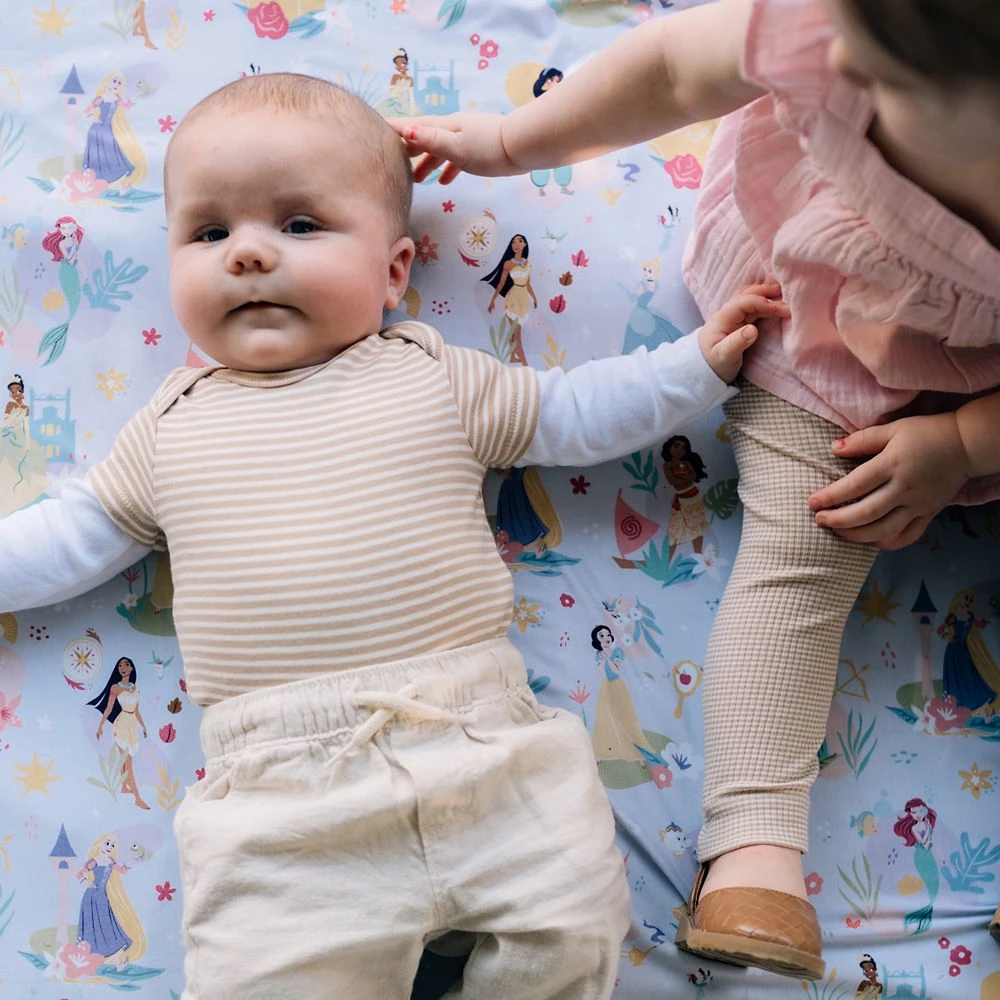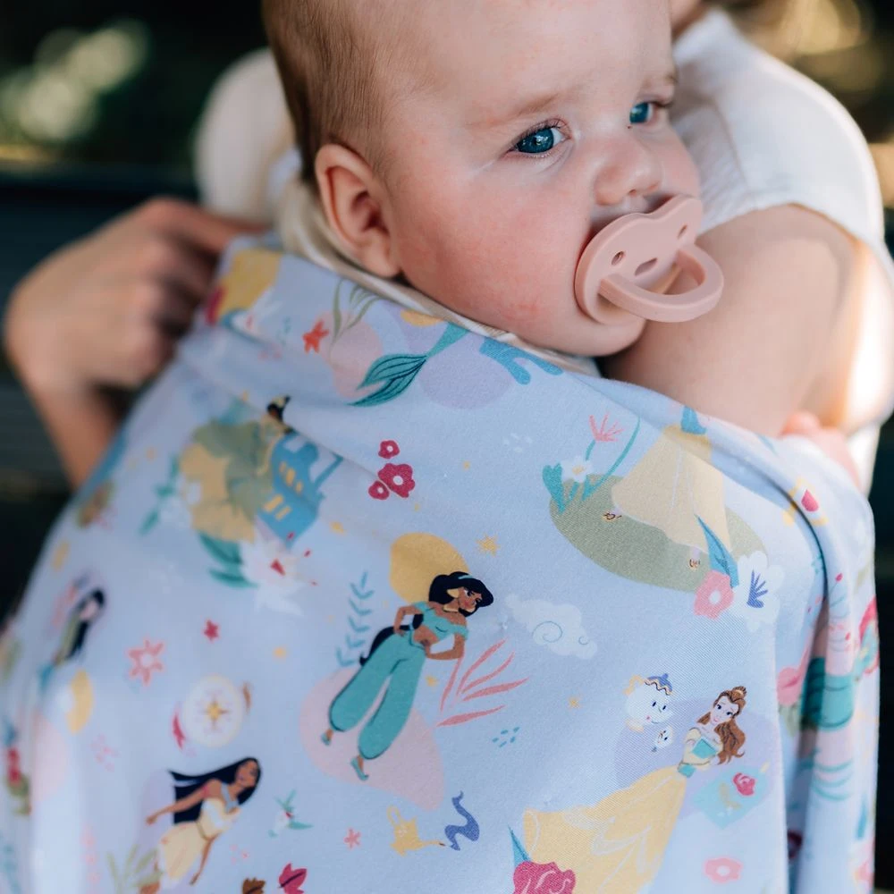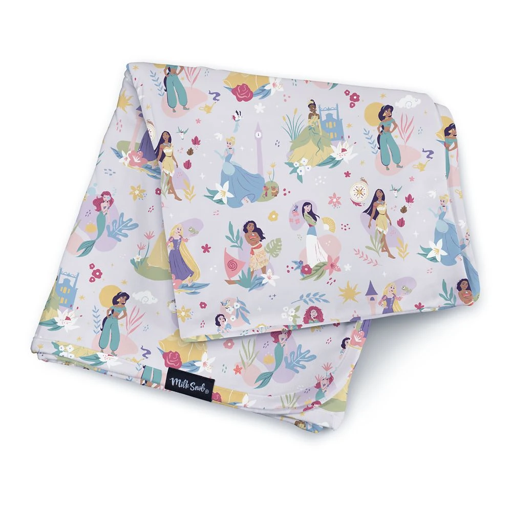 Pocahontas, Cinderella, Belle, and Rapunzel are among the host of Disney Princesses featured in the allover print of this baby blanket by Milk Snob. Featuring the ideal stretch for swaddling, the breathable super soft and snuggly dual-layer design provides the perfect weight for any climate.