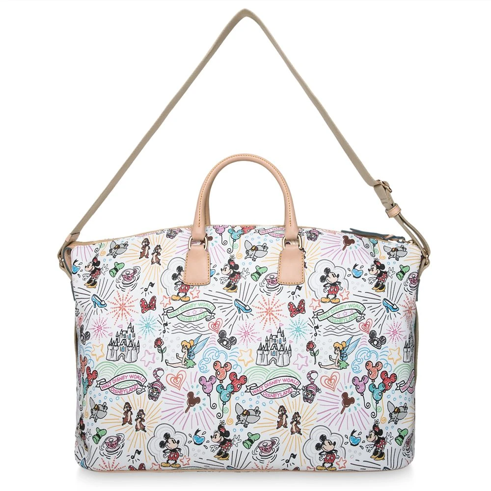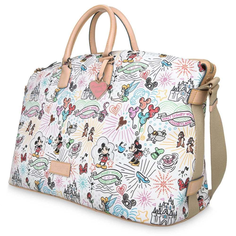 Get away for fun times with this strapping luggage by Dooney & Bourke. Mickey’s fine fashion tote with colorful Magic Kingdom styling comes to you direct from the Disney Parks and the designer label you love.