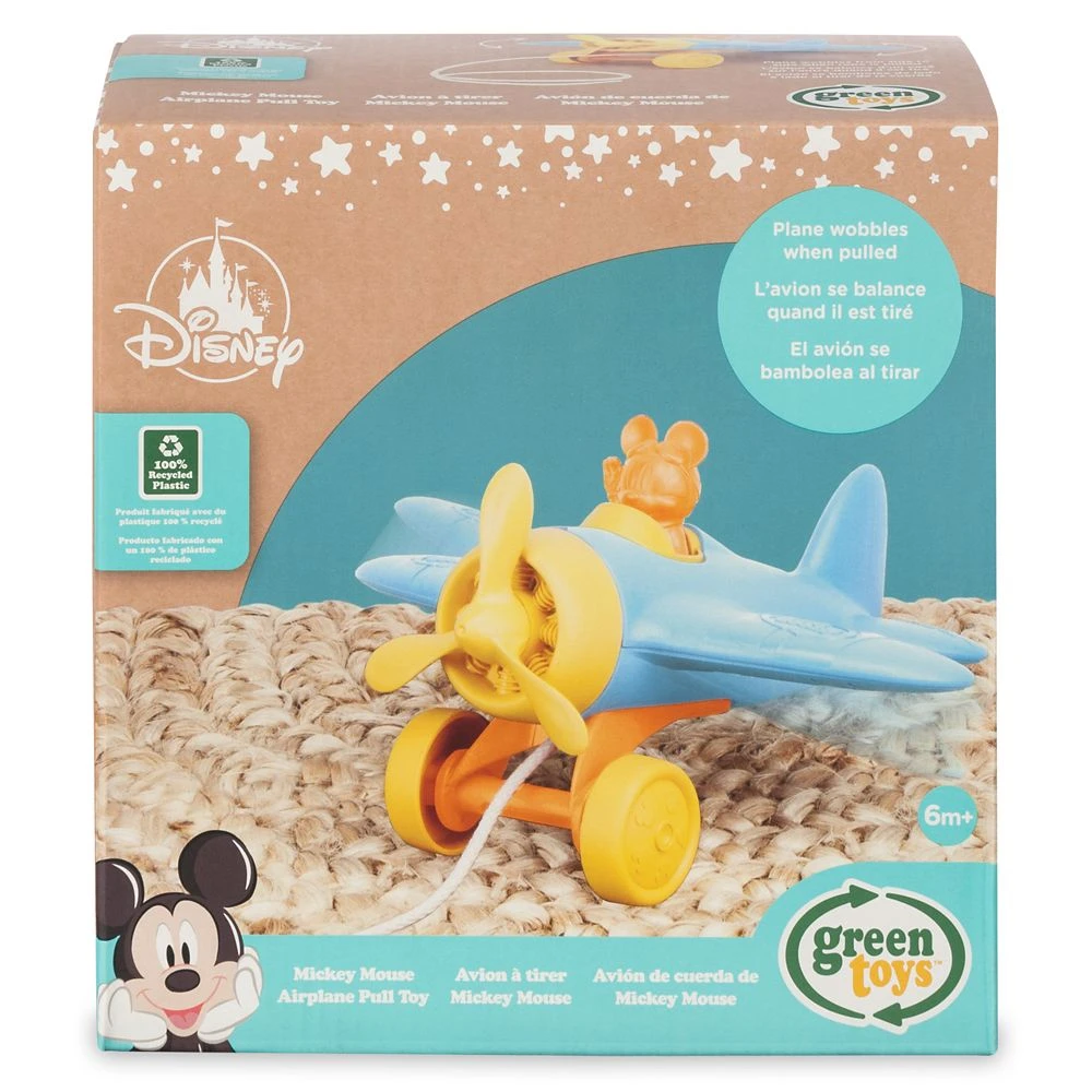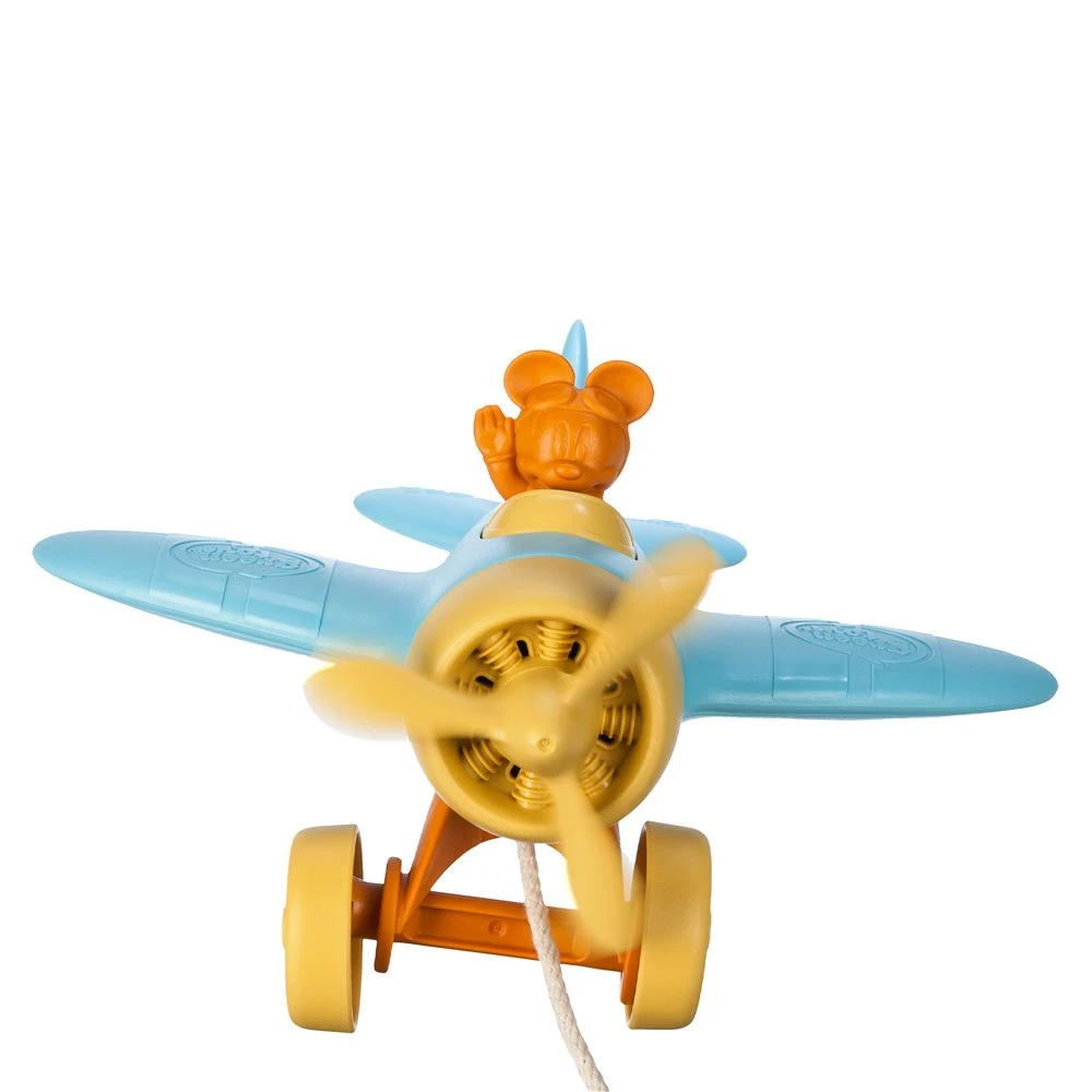 Time flies when they’re playing with this Mickey Mouse airplane pull toy. Mickey smiles from the open cockpit and the plane wobbles when your little one pulls it along. Made from recycled plastic, it’s a sweet and colorful update on a classic toy that will make their imagination take flight.
